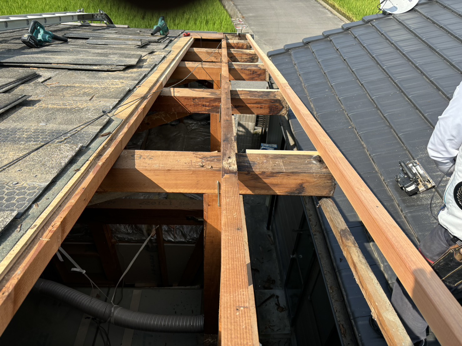 野地板の腐食や損傷がないか、垂木の状態は良好かなど、構造的な安全性を確保するための点検を実施しました。