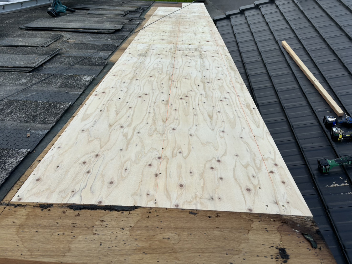固定が不十分だと、強風時に屋根材が飛散する危険性があるため、細心の注意を払って作業を進めました。